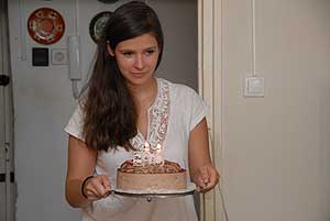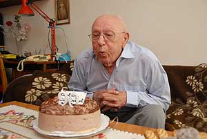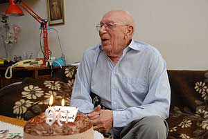 Miközben életét mesélte a főorvos úr, a család egyetlen leány unokája egy díszes tortával lépett a szobába. Igaz két gyertya díszítette azt, de a szám magáért beszél. 90.