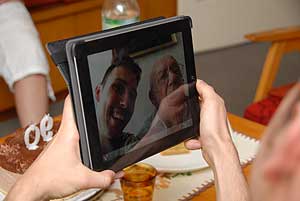 Zoltán bácsi teljesen nyitott a mai kor vívmányaira, így érdeklődve nézte az unokájának a tablet-jét, melyben magát is látta. Az idő vasfoga a látását rongálta meg, ezért a komolyzene maradt meg neki szórakozásnak a hétköznapokban. Miközben nézte a lapos masinát (benne saját fotóját az unokával!), csak egy dolog érdekelte: Fiam! És hol a lencse!