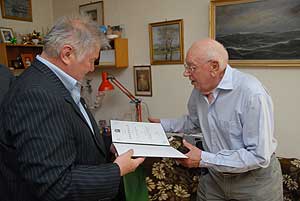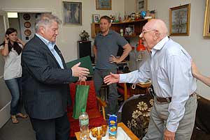 A közös fényképezkedés végén befutott Szirbik Imre polgármester is, aki egy jó borral köszönte meg a hosszú évtizedeken keresztül végzett áldozatos orvosi munkáját és köszöntötte születésének 90. évfordulója alkalmából. Végezetül Orbán Viktor miniszterelnök üdvözlő emléklapját nyújtotta át.