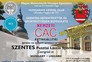 A Magyar Ebtenyésztők Országos Egyesülete, a Hungarian Kennel Club és a Szentesi Ebtenyésztők és Sport Kutyások Egyesülete Nemzeti CAC Kutyakiállítást szervez 2013. június 29-én Szentesen a Pusztai László sporttelepen. Minden érdeklődőt szeretettel várnak! Katt a képre! Szentes, 2013. 05. 26.