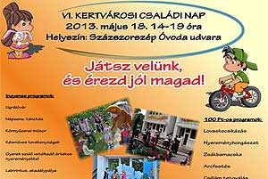 2013. május 18-án 14-19 óra között rendezik meg a VI. Kertvárosi Családi Napot a Százszorszép Óvodában. Számos program közül válogathatnak a résztvevő, melyet a Pom-Pom Együttes műsora zár.