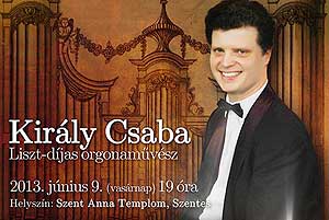 2013. június 9-én a Szent Anna templomban hallhatjuk Király Csaba Liszt-díjas orgonaművész orgonaestjét, melyre a belépés díjtalan, de önkéntes adományokat a hangverseny kiadásaira köszönettel fogadnak. Katt a képre! Szentes, 2013. 05. 16.