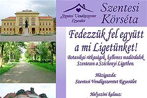 2013. május 11-én, 15 órai kezdettel Fedezzük fel együtt a mi Ligetünket! - címmel vár minden érdeklődőt a Szentesi Vendégszeretet Egyesület, hogy egy közös séta alkalmával Ádám Zsuzsa szaktanár és Bod Péter ornitológus segítségével megismerjük a Széchenyi ligetünket..