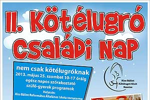 A Kiss Bálint Kötélugró Klub mindenkit szeretettel vár egész napos szórakoztató programokkal 2013. május 25-én (szombaton) 10 – 17 óráig a II. Kötélugró Családi Napjára. Helyszín: Kiss Bálint Református Általános Iskola Katt a képre! Szentes, 2013. 05. 15.