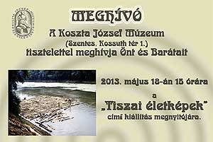 Tiszai életképek címmel nyílik kiállítás a Koszta József Múzeumban 2013. május 18-án 15.00 órai kezdettel. A kiállítást megnyitja Jászné Gyovai Ágnes az Alsó-Tisza-vidéki Vízügyi Igazgatóság Szentesi Szakaszmérnökségnek szakaszmérnöke. A tárlatot rendezte: Mód László néprajzkutató/muzeológus.