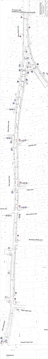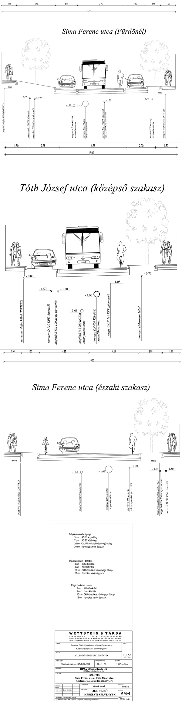 Tervezési program: • Az autósforgalom részben egyirányú lesz déli irányba. (Északi irányba az Ady Endre utcában.) • Az Erzsébet téri körforgalomhoz kell csatlakozni. • Az elvégzett lehajlás mérés szerint a pályaszerkezet erősítése nem szükséges. • Az utcában egyirányú buszforgalom várható, szükséges két buszmegálló kialakítása. • Gépjármű várakozóhelyek kialakítása szükséges. Lehetőség szerint minél több. • Mentő forgalom is bonyolódik az utcában. • Esetleg gyalogátkelőhely létesítése. • Járdák felújítása, burkolatok megtervezése. • Szentesre jellemző (mint minden alföldi mezővárosra) az erős kerékpáros forgalom. Kerékpárút vagy kerékpársáv kialakítása, ellenirányú kerékpárforgalom lehetőségének megvizsgálása.