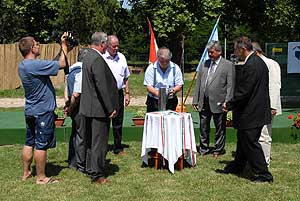 2013. június 17-én Farkas Sándor országgyűlési képviselő úr, Szirbik Imre, Szentes város polgármestere, Dr. Kemény Dénes a Magyar Vízilabda Szövetség elnöke, Dr. Sós Csaba a Magyar Úszószövetség elnökségi tagja, Magyar József a Szentesi Vízilabdaklub elnöke, Nemes Pál a Ferroép Zrt. vezérigazgatója közösen helyezték el az új létesítmény alapkövébe az emlékeztető kapszulát, mely a jelenlegi összes vízi sportot űző csapat fotóját a támogatási döntés határozatát, terveket, látványterveket és a helyi újság egy példányát tartalmazza.