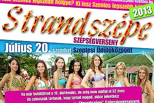 Ha már betöltötted a 16. életévedet, de még nem múltál el 32 éves és csinosnak tartanak, vagy tartod magad, akkor jelentkezz a Szentesi Üdülőközpontban megrendezendő „Strandszépe” Szépségversenyre. A szépségversenyre való jelentkezés csak a jelentkezési lap pontos kitöltésével, egész alakos fényképpel és a részvételi díj befizetésével érvényes. A jelentkezési lapokat személyesen az Üdülőközpont pénztárában (helyben történő befizetéssel) tudják fogadni 2013. július 20. 10.00 óráig. Katt a képre! Szentes, 2013. 06. 10.
