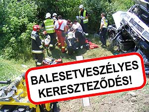 Ebben a kereszteződésben szinte minden évben történik egy-egy baleset. Több emberéletet is követelt ez az ingerszegény környezetben lévő úttalálkozás. A városból kivezető berki út a jó aszfaltjával szinte arra készteti a vezetőt, hogy odalépjen. Oda is léphet, mert városon kívül van, csak egy STOP tábla figyelmeztet arra, hogy veszély leselkedhet ránk! Pár ezer forintból megelőzhető lehet egy-egy ilyen baleset, mert aki helyismerettel nem rendelkezik, és csak egy pillanatra bambul el a szennyvíz-telep láttán, máris beleszaladhat a kereszteződésbe! Érdemes lenne kitenni az út jobb- és baloldalára ezt a táblát: BALESETVESZÉLYES KERESZTEZŐDÉS!