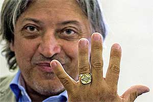 Badár Sándor humoristának ítélték oda idén a Karinthy-gyűrűt, a magyar humoristák legnagyobb elismerését. Badár volt kutyaszánhajtó és tizenkét évig vasutas, tucatnyi filmben játszott, és ott volt a Dumaszínház alapításakor is. Badár Sándor az elismerést megköszönve bevallotta, hogy eddig nem kedvelte a gyűrűket. Megjegyezte, nem könnyű humorosnak lenni, hiszen mindig kell hozzá valaki, aki meghallgatja. Elsősorban a barátainak és családjának mondott köszönetet, mert biztatták és bíztak benne. "17 karátnyi nevetés és taps van benne" - mondta a gyűrűről. Katt a képre! Szentes, 2013. 06. 25.