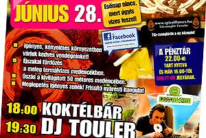 Június 28-án pénteken újabb állomásához érkezeik a nyáresti fürdőzés. Ezen a pénteken a pancsoláshoz való zenét Dj. TouLer szolgáltatja.