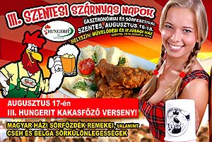 2013. augusztus 16-18. között ismét Szentes lesz a gasztronómia és a sör fővárosa! Ezen a három napos eseményen számtalan program, finomabbnál finomabb ételek, és kiváló házi sörfőzdék remekei várják majd a látogatókat és turistákat. A III. Szentesi Szárnyas Napok új helyszínen kerül megrendezésre (Szentes, Kováts Károly u. 2.) a Kurca-part Kalandparkban. A rendezvény minden napja tartogat meglepetéseket, akár ételről, italról, vetélkedőről, vagy sportprogramról is legyen szó. Katt a képre! Szentes, 2013. 06. 25.