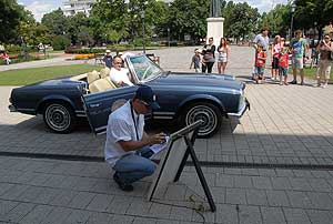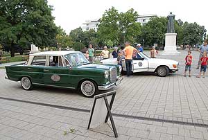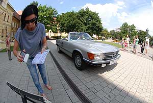 Tizedik évfordulóját ünnepli idén a Mercedes-Benz Classic Csillagtúra, az ország egyik legnagyobb múltú, kizárólag Mercedes-Benz modelleket felvonultató oldtimer versenye, melynek népes csapata a Hajdú Lajos utcán felállított pontos időre megtett akadálypályát teljesítette Szentesen. A pálya két részből állt, az első 10 métert 7 a második 10 m-es távot 8 mp alatt kellett megtenniük az autócsodáknak.