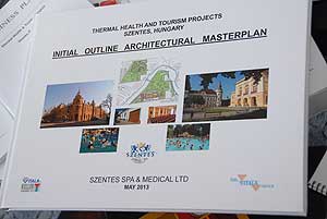 A mai napon 2013. június 6-án Katos Zsolt, a Szentes Spa & Medical Ktf. ügyvezető igazgatója Brezovai Sándor főtanácsadó jelenlétében átadta Szirbik Imre polgármesternek a Szentes Projekt dokumentációját (üzleti terv, marketing terv, pénzügyi megvalósíthatósági terv, mestertervek). Ezzel befejeződött a projekt két éves előkészítő munkája, mellyel együtt egy új szakaszba lépve, belátható távolságra került a beruházás finanszírozása.