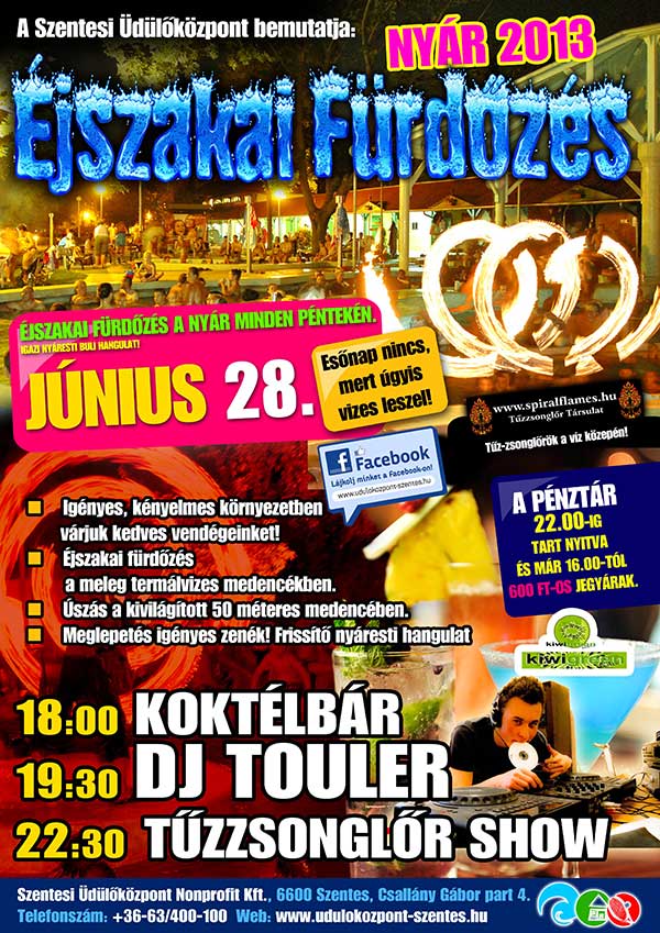 Június 28-án pénteken újabb állomásához érkezeik a nyáresti fürdőzés. Ezen a pénteken a pancsoláshoz valót Dj. TouLer szolgáltatja.