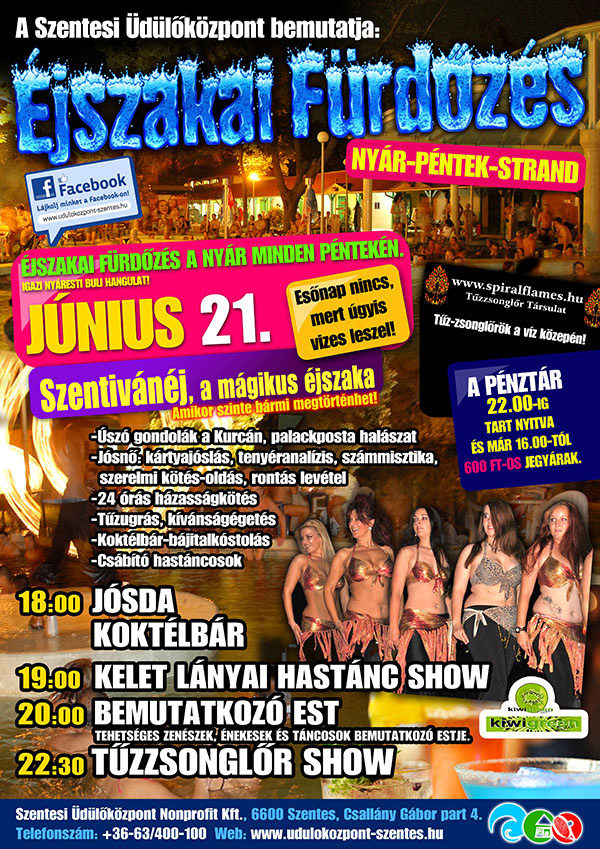 2013. június 21-én az éjszakai fürdőzés keretében mágikus éjszakára kerül sor a szentesi strandon, ahol úszó gondolákon hajózhatunk a Kurcán. Az érdeklődőket boszorkánypraktikák és jóslások is várják ezen az esten!