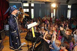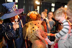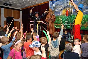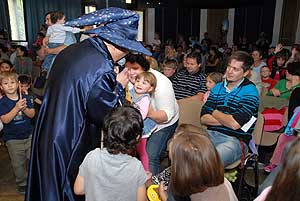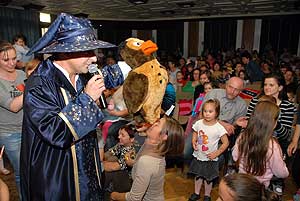A csordultig telt pódiumteremben igazi "Varázsföldi" hangulatot varázsolt Ernő, a Nagy Varázsló (Tocsó), , Antimetronómusz (Kisbugi) és Begurítusz varázsló (Doki). A kis varázslótanoncok igazi varázspálcákat kaptak, amivel segíthettek Ernőnek kiállni a próbákat, sőt még magát Ernőt is levarázsolták.