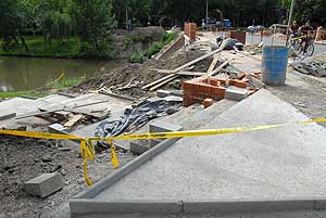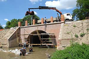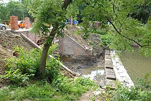 Az alábbi képek 2013. június 12-én a megnyitás előtti napon készültek, melyen látható, hogy szépen kitakarították a medret. Már csak néhány homokzsák és a betonlapok akadályozzák a víz beáramlását.