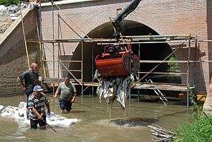 Másnap, mikor megnyitották a gátat percek alatt megtelt az elzárt csatornaszakasz, és már csak a homokzsákok és betonelemek kiszedése maradt hátra.