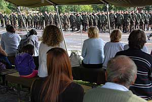 Az MH EUFOR Kontingens 13. váltása márciustól vett részt kiképzésen, nemrég pedig zárógyakorlaton adtak számot a felkészültségükről. A pénteki ünnepélyes búcsúztatáson a megjelent családtagokról az alezredes kijelentette: nagy teher hárul majd rájuk, nyújtsanak biztos hátteret a szarajevói szolgálaton lévő fiaiknak és lányaiknak. Takács Tamás alezredes, tábori lelkész megáldotta a kontingenst.
