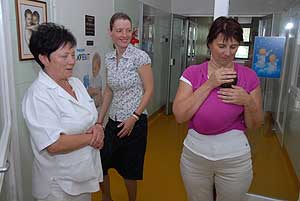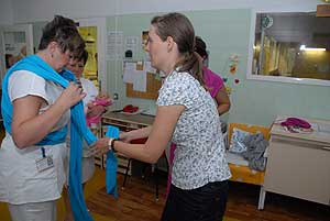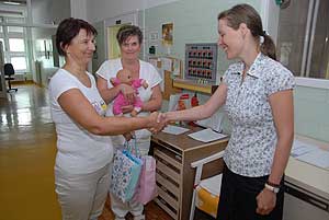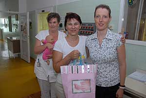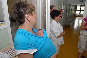 "Hordozókendőt a szülészetekre" akció keretében a BatyuBaba Hordozósklubtól már került egy hordozókendő a Csongrád Megyei Dr. Bugyi István Kórház Újszülött Osztályára, hogy az ott szülő kismamák kipróbálhassák azt. A napokban viszont két saját tulajdonú kendőt vehetett át Dr. Tóth Edit osztályvezető főorvos Hankóné Králik Orsolyától.