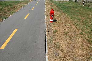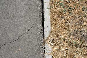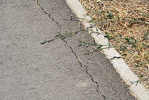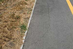 A kerékpárút szegélye több helyen önálló életre kelt, így próbál elszabadulni, amit az aszfalt igyekezett visszatartani, sikertelenül.