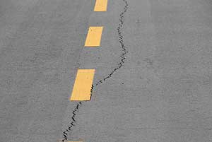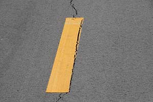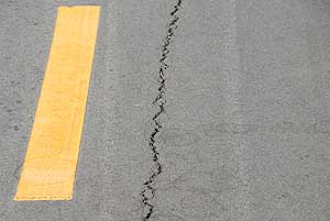 Találtunk egy olyan szakaszt, ahol több centis a repedés, ami azért "jó" mert ott lemérhető, hogy milyen vastag az aszfalt réteg, milyen vastag a betonréteg, mert annyira belátható!