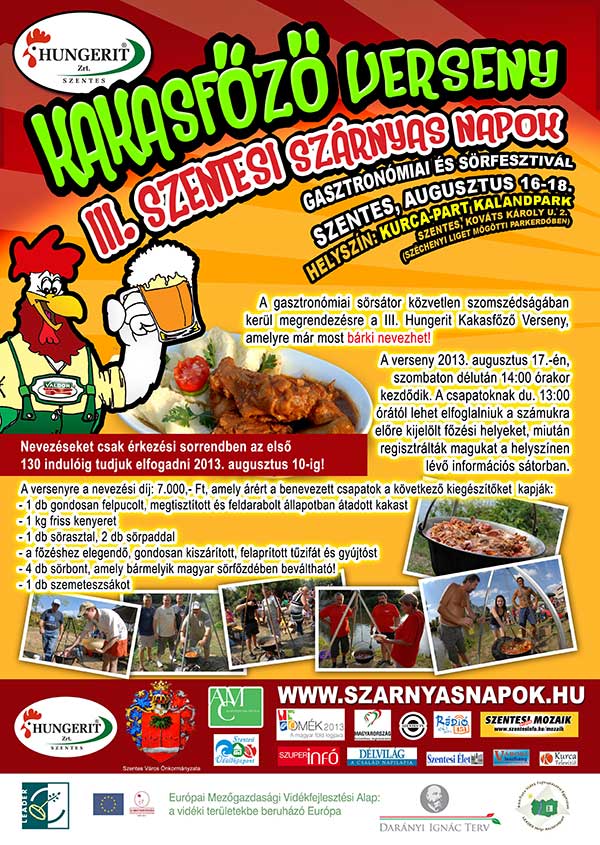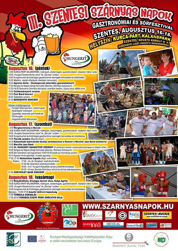2013. augusztus 16. és 18. között rendezik meg Szentesen – immár harmadszor – a Szárnyas Napokat. A helyszín új lesz: az épülő Kurca-part Kalandpark.