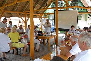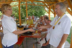 A kerék most fordult egyet. Július elsejétől a Szentes - Csongrád Rotary Klub élén új elnök áll Horváth István személyében. A stafétát Gila Zsóka adta át az elnöki beszámoló után az Antal-tó partján.