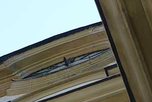 A vörösrézből készült mutató szegecsei a viharos szél vibrációja miatt átszakadtak és leesett. Szerencse a szerencsétlenségben, hogy a mutató zuhanása során senkit nem talált el. Közel fél napot pihent a járdán, de ezalatt nem járt arra egy színesfémre érzékeny ember, így az 1870-ben készült mutató kisebb sérülésekkel ugyan, de meg lett!