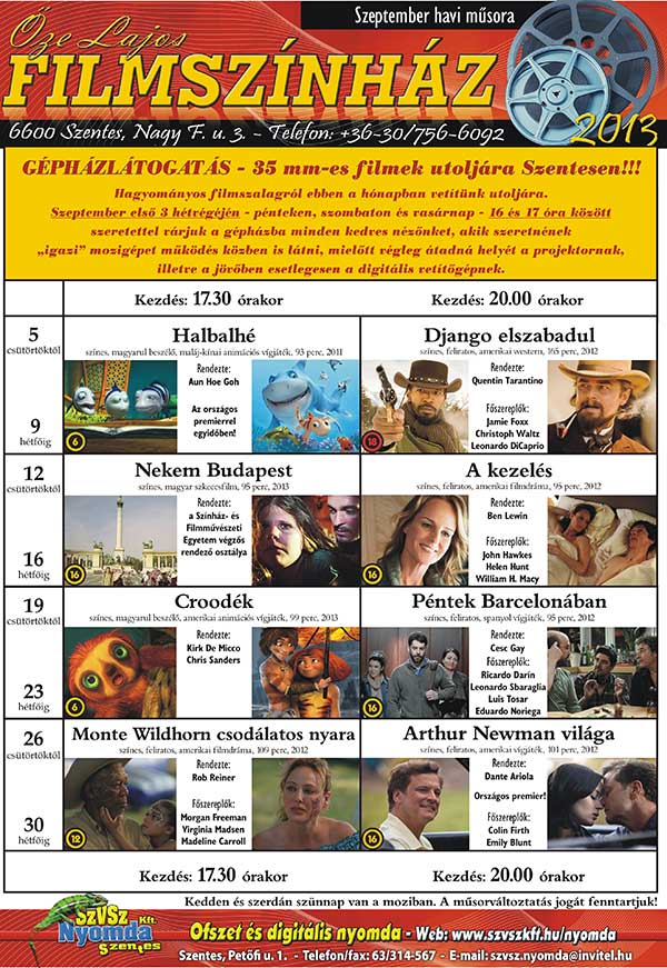 GÉPHÁZLÁTOGATÁS A MOZIBAN 35 mm-es filmek utoljára Szentesen!!!