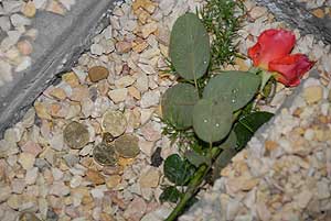 Ezen a napon este kilátogattunk az emlékműhöz, hogy éjszakai "fényben" is megörökítsük azt, és arra lettünk figyelmesek, hogy a fent említett roncs darab és az azt őrző "kapszula" eltűnt. Helyén csak egy szál rózsa és 4 db 5 forintost találtunk! A helyszínen semmi sem jelezte, hogy hova tűnhetett, így nyomozásba kezdtünk.