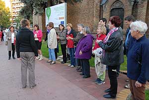 Katonáné Malmos Edit kórusvezetőtől megtudtuk, hogy a finn-magyar baráti társaság kórusa meghívást kapott városunkba, és a saját eszközeikkel (az énekkel) próbálták a másnapi műsorukat hirdetni. A flashmob előtt megtekintették a város több nevezetességét, így voltak a Fridrich féle fényirdában, a Koszta József Múzeumban.