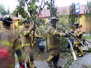 A viharos szél az Ilona part városrészt a városközponttal összekötő útra fákat döntött, miközben az itt található idősek otthonából többeknek is segítségre volt szüksége. A járási mentőcsapat itt is jól teljesítette feladatát: motoros láncfűrésszel eltávolították az úttestre dőlt fákat és szivattyúval a több épületet is elöntött vizet, továbbá az egyik buszmegálló mellett lévő személygépkocsiból is – amelyre a viharos szél egy fát döntött – kimenekítették a sérülteket.