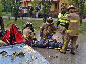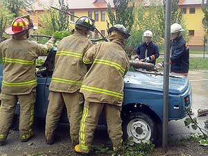 A városra lecsapott vihar szituációja szolgáltatta a feladatokat a Szentesi Járási Mentőcsapat tagjai számára szombati, rendszerbe állító gyakorlatukon.