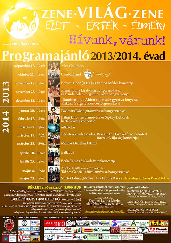 A "ZENE – VILÁG – ZENE” kulturális rendezvénysorozat 2013/2014. évadja