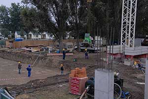 Ez azt jelenti, hogy amíg azzal nem készülnek el, addig nem lehet a sátrakat felhúzni, így reménykedünk az enyhe őszben. A cél, hogy minél hamarabb elkészüljön ez a kiszolgáló egység, hogy a tél beállta után rendeltetésszerűen használható legyen a 33-as és a 25-ös medence.