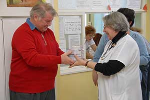 Dr. Szekeres Veronika, az OVSZ Dél- Alföldi régió vezetője és Sasvári Krisztina, a Vöröskereszt megyei igazgatója megköszönte a nemes felajánlást Szirbik Imre polgármesternek aki Dr. Furák Ilona a Vérellátó osztály vezetőjének adta át a belépőket.