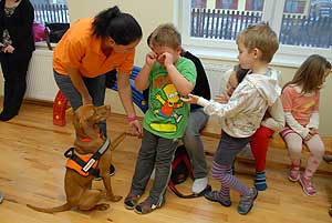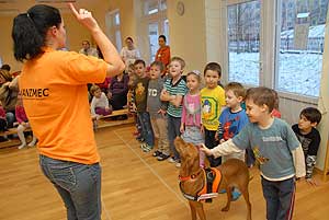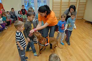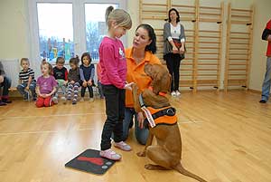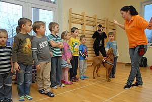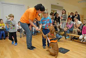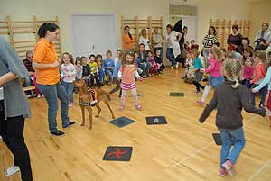 Csák Petra terápiás kutya felvezetőtől megtudtuk, hogy a kutyás foglalkozások célja: mozgás fejlesztés, térbeli tájékozódás fejlesztése, kutyákkal való helyes kommunikáció megtanulása, kommunikációs készségek fejlesztése, szorongásokat oldó önbizalom növelés.