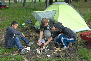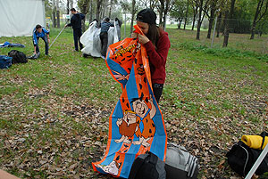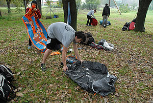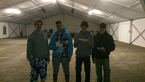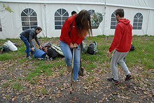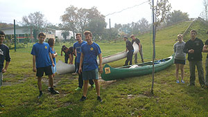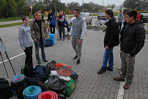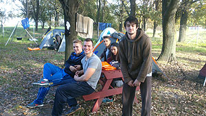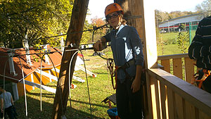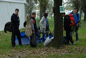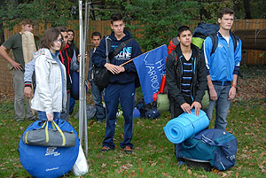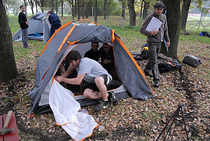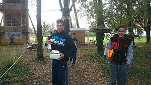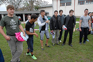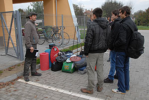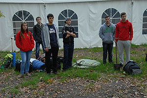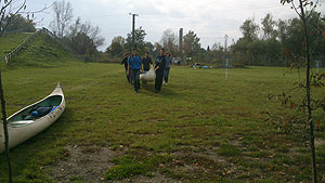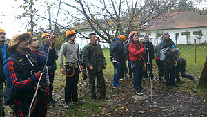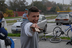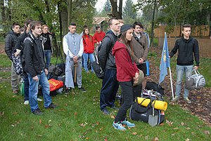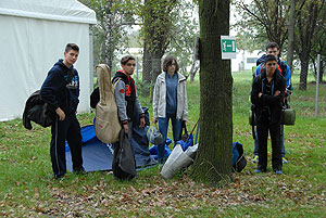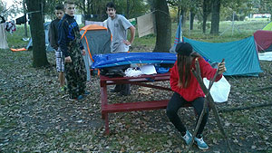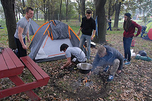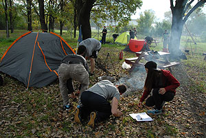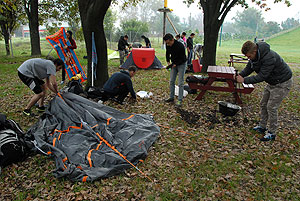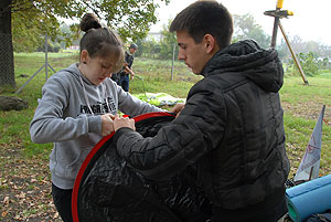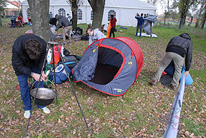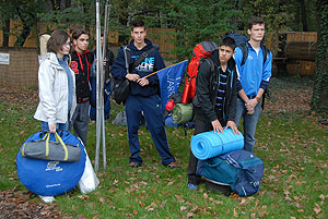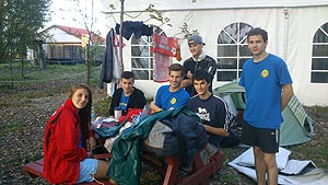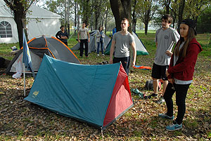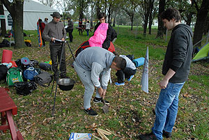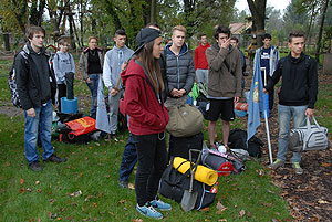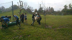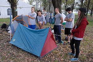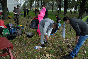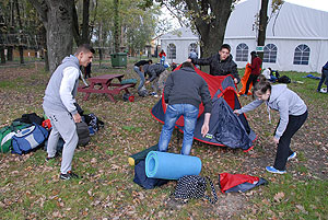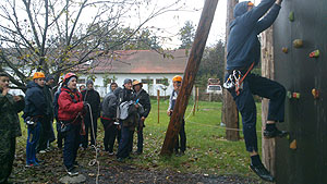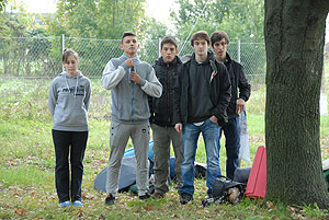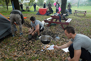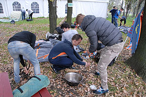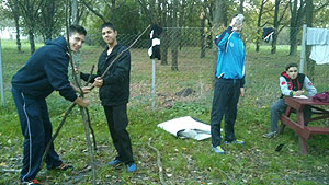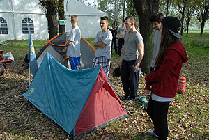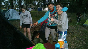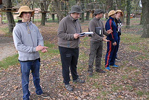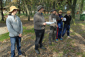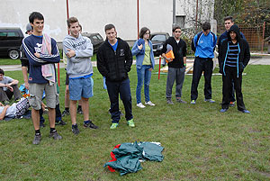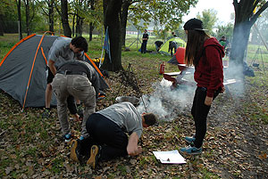 Október 21-én reggel a Kurca-part Kalandparkban Szirbik Imre polgármester köszöntötte a kalandvetélkedő résztvevő diákjait. A vetélkedőn a Bárhol Tábor elnevezésű feladattal kezdtek a csapatok. Itt tábort kellett felállítani időre. (Érdemes megjegyezni, hogy a játékmesterek a kalandvetélkedő kezdetén begyűjtötték a résztvevőktől az összes mobiltelefont) Ebben volt sátorállítás, asztal behozatala a táborba (jó messzirőlJ) , bográcsállvány felállítása, matrac felfújása és leengedése időre, tábortűz gyújtás, vízvédelem kialakítása, stb. Ezt a versenyszámot a Pollák hősei nyerték. Bár a HMG csak a második helyre futott be, keményen küzdöttek, főképp a csapat lány tagja, Szőke Anna, aki önként jelentkezett a nehéz tábori asztal cipelésére. Az első versenyszámot követően a csapatok pihenésképpen áthozták a kenukat a Dózsa háztól. Ezután Bertók Róbert és Bocskay István „játékmesterek” kiosztották a „Vadon szava” túlélő feladatokat betanulásra. A vadonban nélkülözhetetlen biztonsági csomók megkötésének technikáját a kalandpark dolgozója, nem mellékesen „leszerelt kalandlovag veterán” Őri József mutatta meg a tudásra szomjazó résztvevőknek.