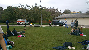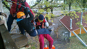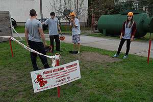 Következő versenyszám az „ A mentőakció” Szentesi Hivatásos Tűzoltó-parancsnokság segédletével zajlott le. Ebben a talán legösszetettebb feladatban volt autóból mentés, tűzoltás, akadálypálya, toronyba fel és lefutás, kocsi tolás, stb. A KÖZGÉ csapata „őrjöngő” tempóban nyerte ezt a versenyszámot. Őt követte sorban a HMG és a Pollák. Érdemes megjegyezni, hogy bár az éhezők viadala nevet viselte a vetélkedő, a játékmesterek most is aranyszívűek voltak, hiszen megengedték az indulóknak, hogy menetelés közben egyenekJ