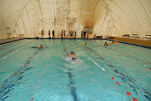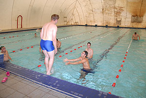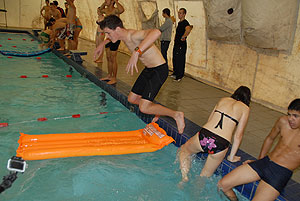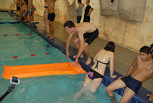 Egy gyors futást követően hamarosan a strandon landoltak a csapatok, ahol az egyik nagy kedvenc, a „Matracos gyorsasági verseny” vette kezdetét. A matracok szájjal való felfújása után lehetett vízre tenni a matracot és azokon „gyors tempóban” végigevezni a medencében. A vízen a Pollák Hősei bizonyultak a legjobbnak.