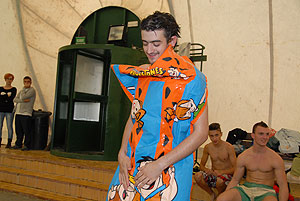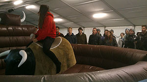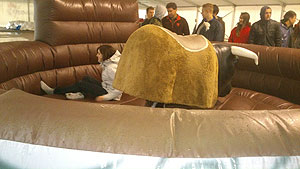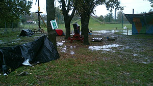 Aznap a tábori takarodó után hajnalban jött a hidegzuhany! Szó szerint, hiszen hatalmas vihar kerekedett özönvíz szerű esőzéssel. Itt bizony gyorsan kiderült, hogy ki mennyire vette komolyan a sátor vízvédelmét a felkészülés során, vagy éppen melyik csapatnak, hogy sikerült megépíteni rögtönzött éjjeli menedékét, amelyben nem mellékesen egy csapattagnak bent kellett tartózkodni éjjel. A tábor kis túlzással olyan arcát mutatta, mintha természeti katasztrófa sújtotta volna. Reggelre a csapatok kissé megtörve várták az első feladatot, és volt aki a feladás gondolatával barátkozott. Bertók Róbert játékmester „lelkesítő” beszéde után újra felgyulladt a tűz a gladiátorok, őrjöngők, harcosok és a hősök szemeiben, és újult lendülettel vetették magukat a második nap „gyötrelmeibe”. Egy kis színt hozott a ködös szürkeségbe a csapatok lány tagjainak Rodeó Bika lovagló versenyszáma. A legjobb rodeósnak a KÖZGÉ –ből , Simondán Beatrix bizonyult. Ezt követően a DOMB következett. Váltófutással kellett felküzdeni magukat a csapatoknak a csúszós és meredek dombra. Két kör kemény dombfutás után ismét a KÖZGÉ győzedelmeskedett, és ők tűzhették ki a csapatzászlót a domb tetejére. Ebben a versenyszámban is bebizonyosodott, hogy a feladatok ismertetésére nagyon kell figyelni, hiszen a Zsoldos elrontott az indulási sorrendet, így bár nagyon jól futottak, a büntetés miatt mégis utolsók lettek ebben a versenyszámban.