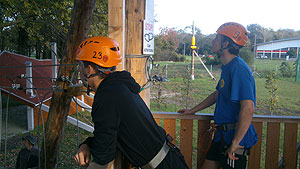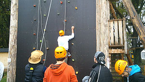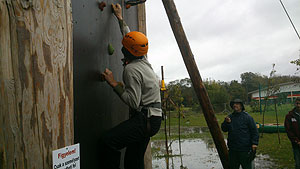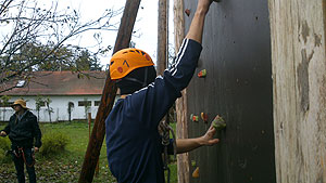 „Csúcs ez az út”, mondták is az indulók a mászófal váltómászás versenyszámnál. Nem kicsit nehezítette a feladatot a mászófal fogásaira felvitt sár. Az sem sokat segített a csapatoknak, hogy az utolsó mászónak bekötött szemmel kellett teljesítenie a feladatot. Mindemellett nagyon jól másztak a kalandorok. Ekkor már úgy látszott, hogy a KÖZGÉT nem lehet megállítani, hiszen ezt a feladatot is ők nyerték. Utánuk a Pollák, HMG, Zsoldos és MEZGÉ „futotta” a legjobb időt.