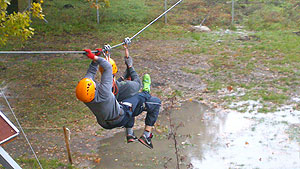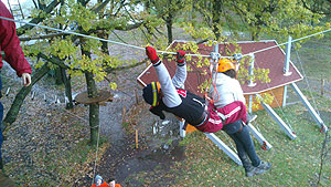A kalandvetélkedő egyik legizgalmasabb feladatában a 7 méter magasan lévő drótkötél pályán következett a „Függő játszma” . Váltásban kellett a résztvevőknek kimenteniük társaikat, amely nem volt könnyű feladat, hiszen ekkorra már igencsak átfagyott mindenki, és lemerevedett izmokkal nehéz volt jól teljesíteniük. Az utoljára induló csapatok dolgát még a szakadó eső is nehezítette. Valószínűleg ennek is köszönhető, hogy a legjobb időnek kinéző futam végén kétszer is visszacsúszott a mentett társuk, így „csak” a harmadik helyet hozhatták el. Ebben a számban a Zsoldos kiköszörülte a futásnál szenvedett csorbát, és jó idővel megérdemelten nyerték ezt a versenyszámot.