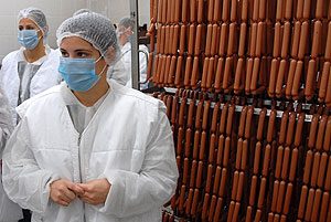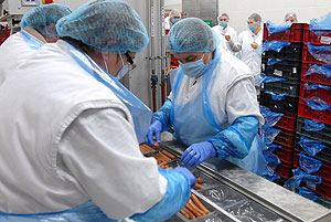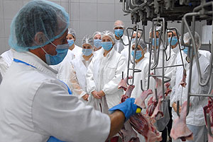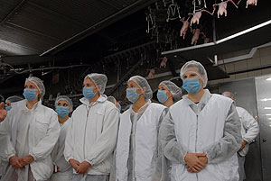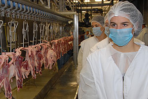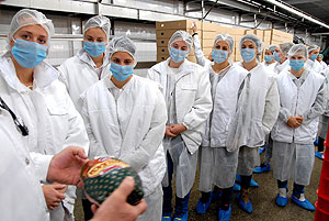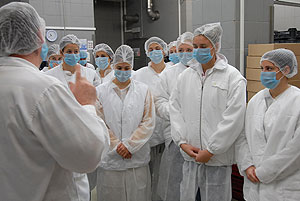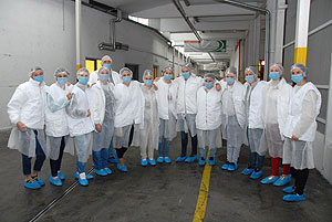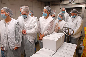 Az ismertető után a csapattagok beöltözött a kötelező védőfelszerelésbe és megtekintették gyárat. Elsőként a szeletelt áru csomagolását, majd a virsli készítését láthatták. Utána jött a vágósor, majd végezetül az új élőállat-fogadó rendszert tekintették meg.