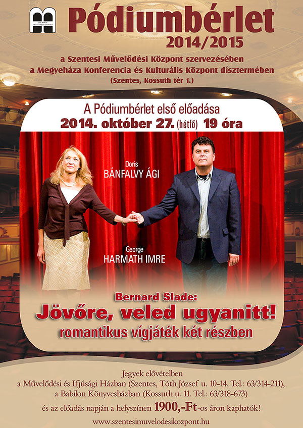 2014. október 27-én kerül megrendezésre a Pódium bérlet első előadása, melyben Bánfalvy Ági és Harmath Imre előadásában láthatjuk Bernard Slade: Jövőre, veled ugyanitt! romantikus vígjátékát két részben. További részletek a plakáton!