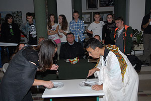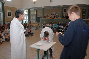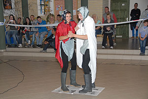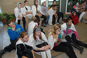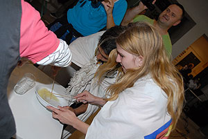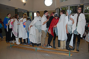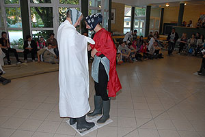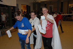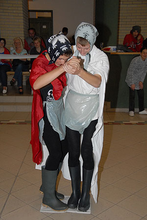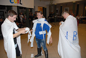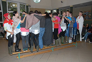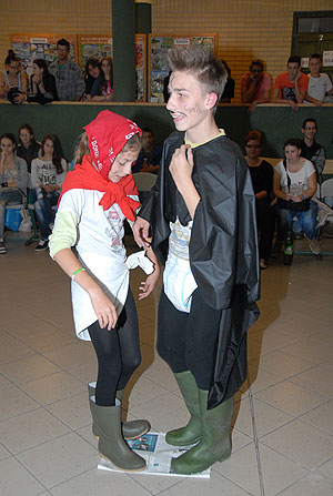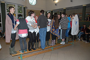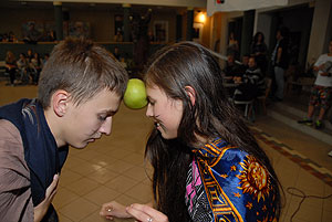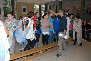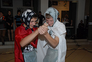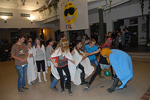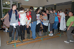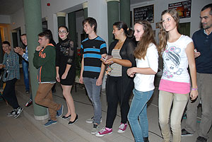 Az elmúlt évek leglelkesebb és legaktívabb 9.-es csapatait láthattuk a szentesi VM ASzK - Bartha János Kertészeti Szakképző Iskola gólyavetélkedőjén, akik minden feladatot a lehető leglelkesebben, örömmel hajtottak végre, mindegy, miről volt szó: az egymás magasból történő etetése joghurttal ugyanolyan lendülettel ment végbe, mint a némadiszkó, vagy a mézes arccal lisztes tálba fújás. :)