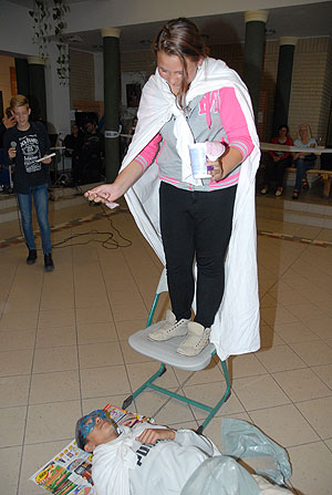 Külön kiemelhetjük a 9.A osztály osztálytáncát és csodás lepedőfestményét, ami ezentúl is az iskolát díszíti majd. Vagy a 9.B osztály ügyességét a lufidurrogtatós játékban, illetve a csodálatos énekhangot, mellyel Whitney Houston I Will Always Love You című dalát énekelték el mikrofonba úgy, hogy a zenét csak az éneklő hallotta. :) Megvolt benne az X-faktor, az biztos! :)