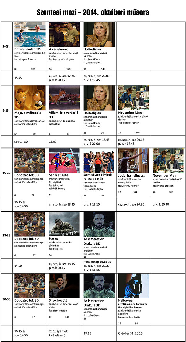 MŰSORVÁLTOZÁSOK A SZENTESI MOZIBAN!!!